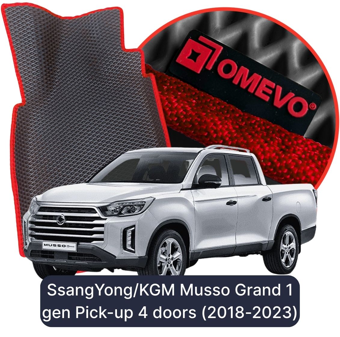 OMEVO 5D Pro EVA Dywaniki do SsangYong/KGM Musso Grand 1 gen Pick-up 4 drzwi (2018-2023)